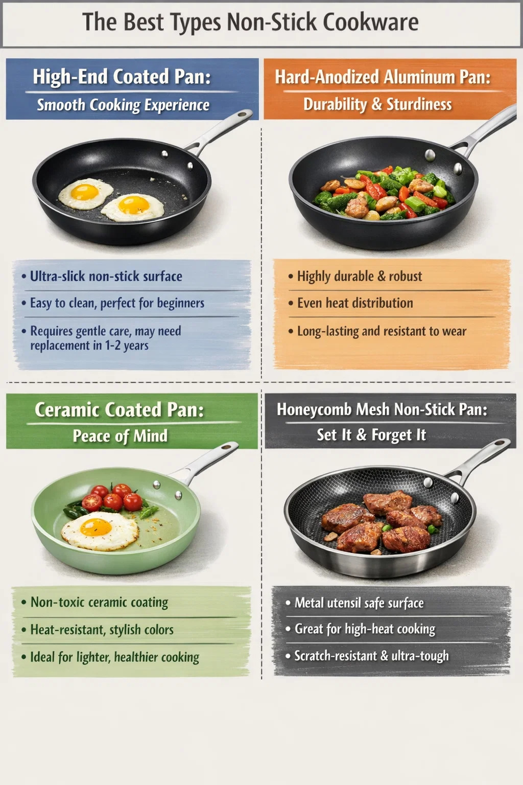 Eligiendo lo mejor utensilios de cocina antiadherentes No se trata de encontrar una única "mejor opción", porque cada uno tiene diferentes estilos de cocina. La mejor sartén para ti será la que mejor se adapte a tus hábitos de cocina y preferencias de mantenimiento.